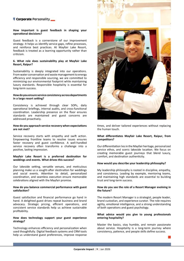 With a strong foundation in luxury hospitality and a people-first leadership approach, Ankur Saluja continues to elevate the guest experience at Mayfair Lake Resort, Raipur, reinforcing the brand’s reputation for elegance, warmth, and excellence.