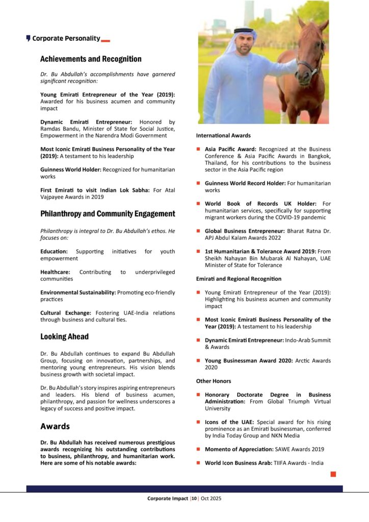 Dr. Bu Abdullah’s story inspires aspiring entrepreneurs and leaders. His blend of business acumen, philanthropy, and passion for wellness underscores a legacy of success and positive impact.