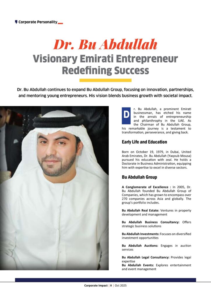 Dr. Bu Abdullah, a prominent Emirati businessman, has etched his name in the annals of entrepreneurship and philanthrophy in the UAE. As the Chairman of Bu Abdullah Group, his remarkable journey is a testament to transformation, perseverance, and giving back.