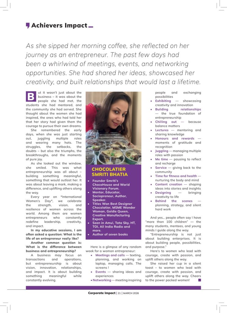 Founder Smriti’s ChocoHouse and World Visionary Forum.