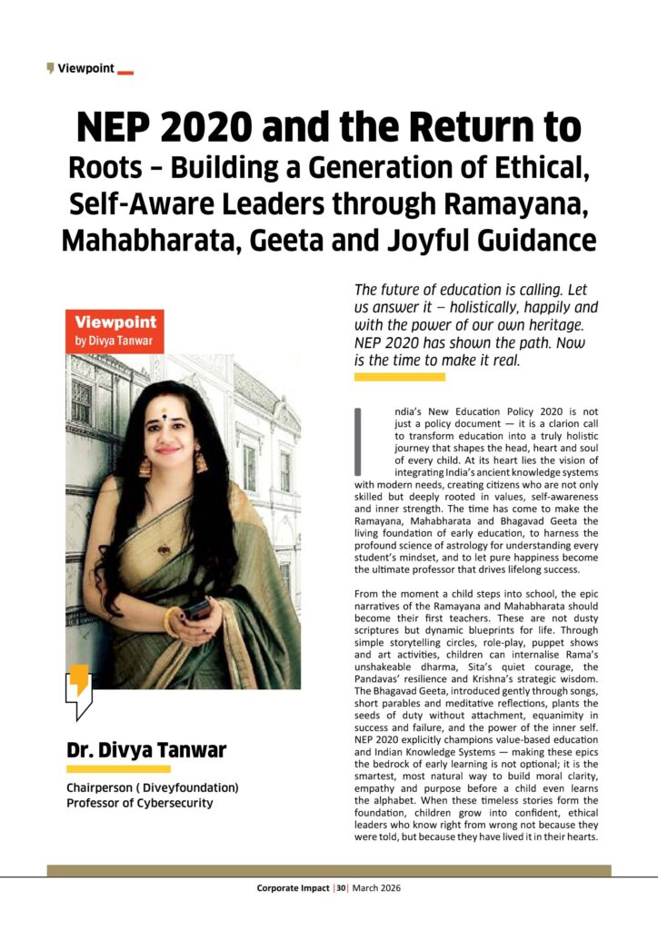 I ndia’s New Education Policy 2020 is not just a policy document — it is a clarion call to transform education into a truly holistic journey that shapes the head, heart and soul of every child. At its heart lies the vision of integrating India’s ancient knowledge systems with modern needs, creating citizens who are not only skilled but deeply rooted in values, self-awareness and inner strength. The time has come to make the Ramayana, Mahabharata and Bhagavad Geeta the living foundation of early education, to harness the profound science of astrology for understanding every student’s mindset, and to let pure happiness become the ultimate professor that drives lifelong success.