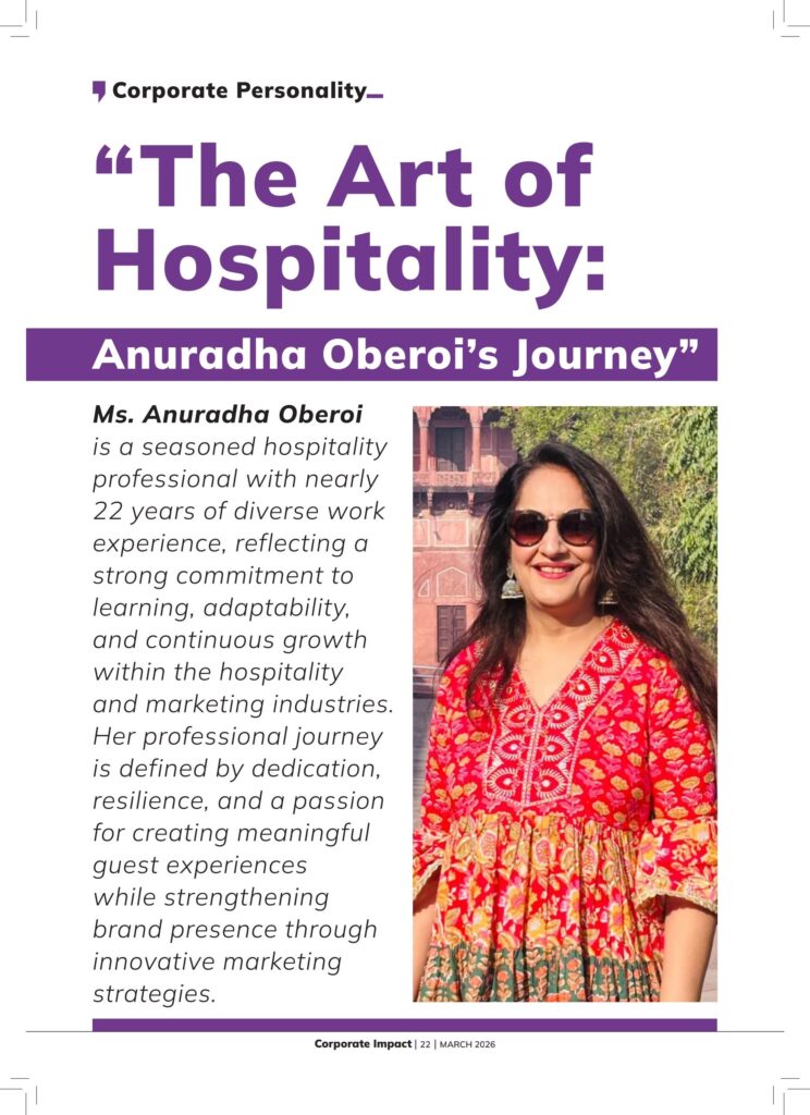 With her strong industry experience, leadership mindset, and passion for hospitality marketing, Ms. Anuradha Oberoi continues to inspire teams while creating impactful brand stories that elevate guest experiences and strengthen hospitality brands.