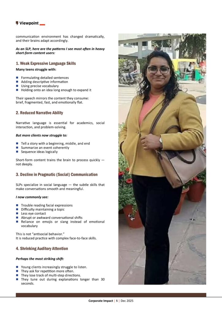 In my clinic and school consultations, I’m witnessing a shift in how children, adolescents, and young adults express themselves. And that shift aligns closely with a lifestyle increasingly dominated by hyper-short, high-dopamine content.